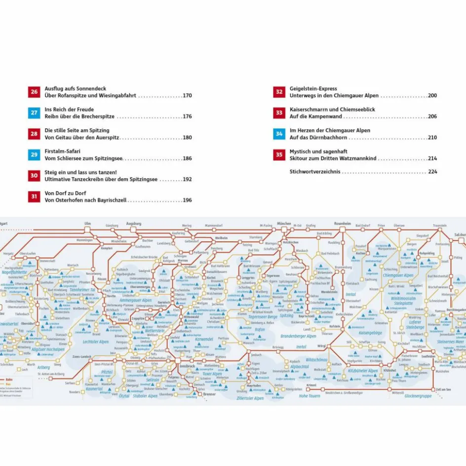 Der erste Skitourenführer für Touren ganz ohne Auto. So lässt sich Freizeitspaß und Klimaschutz vereinen! Ohne Stau und Parkplatzsuche. Skitouren mit »Öffis« – öffentlichen Verkehrsmitteln – bieten ungeahnte Freiheiten. Sie bedeuten nicht nur eine umweltfreundliche Anreise, sondern bieten ganz neue Tourenmöglichkeiten. Denn schließlich muss man nicht zum Ausgangspunkt zurück, sondern kann ganz flexibel nach Lust, Laune und Schneelage immer wieder neu entscheiden.