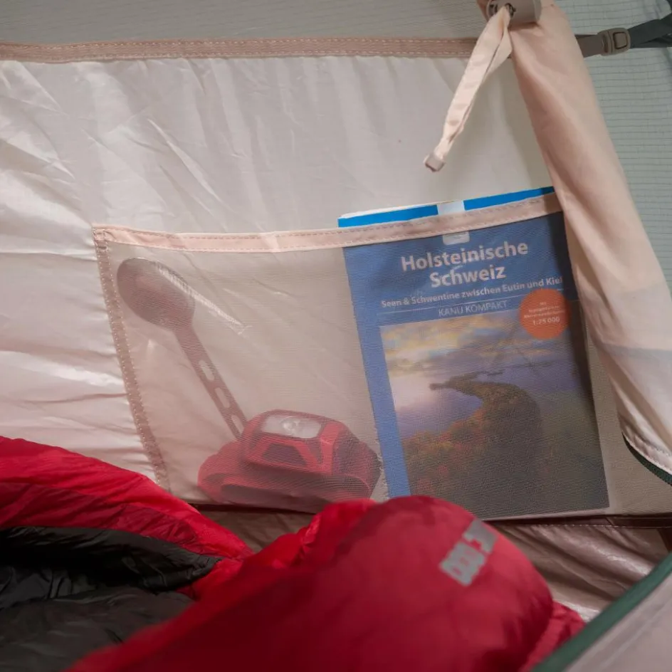 Die beiden Eingänge ermöglichen dir, das Zelt zur windabgewandten Seite zu verlassen und deine Ausrüstung auf beide Apsiden zu verteilen. Im Innenzelt stehen dir eine Wäscheleine sowie zusätzliche Schlaufen zur Verfügung, an denen du eine Zeltlaterne aufhängen kannst.