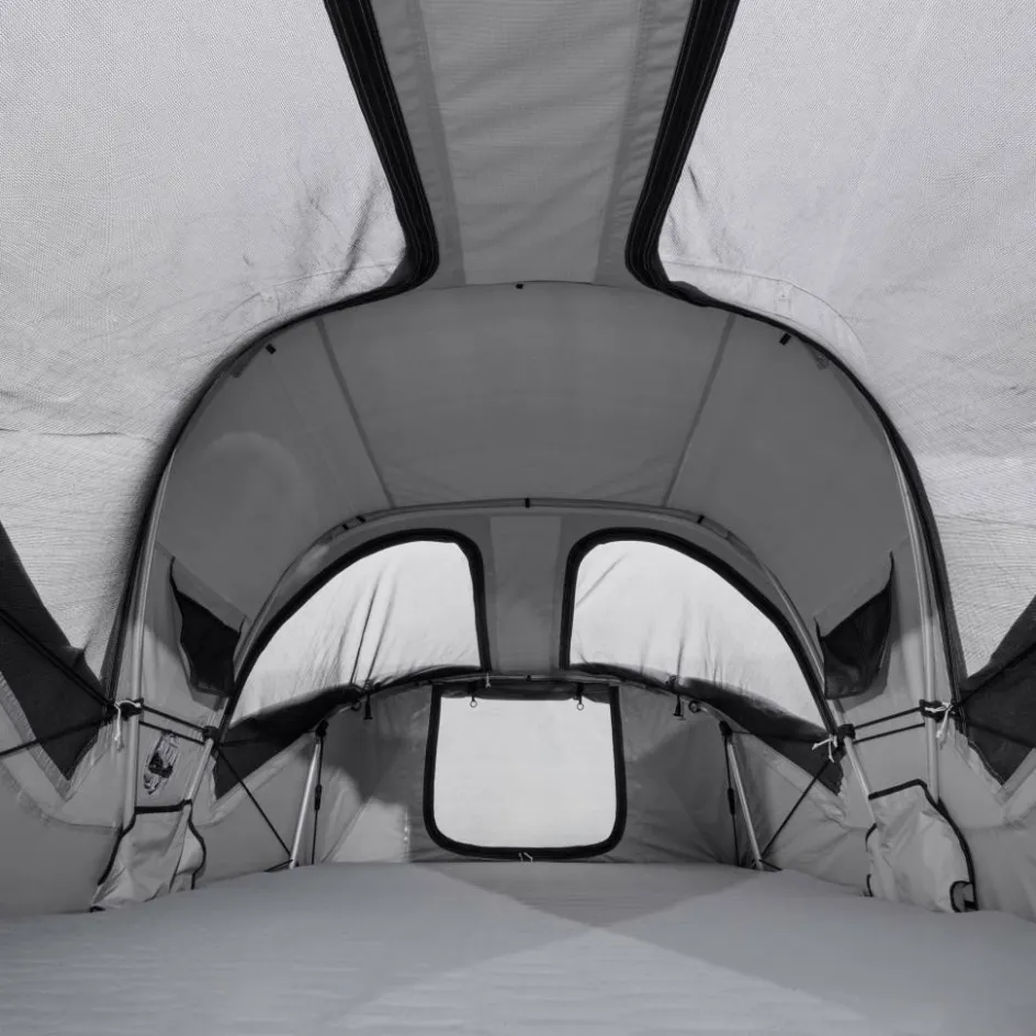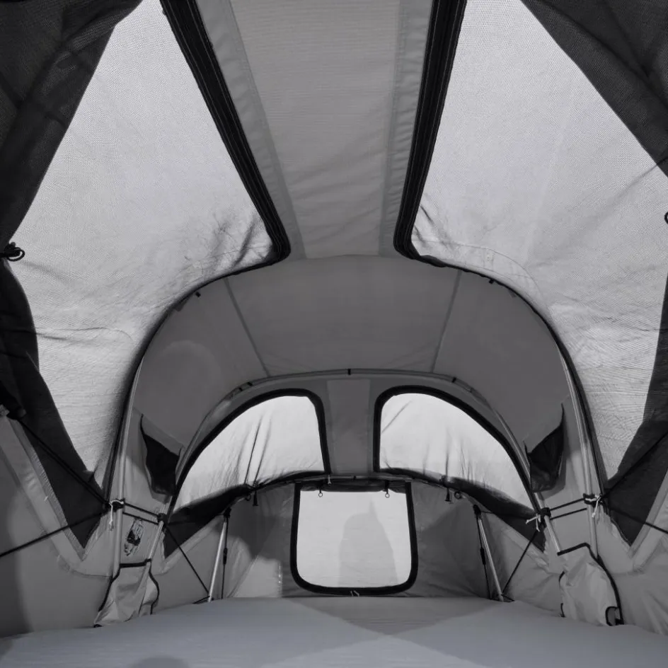 Am Stellplatz lässt sich das Dachzelt in nur wenigen Minuten zu einem gemütlichen Schlafplatz entfalten. So bleibt mehr Zeit zum Ankommen, Abschalten oder um frische Luft ins Zelt zu lassen.