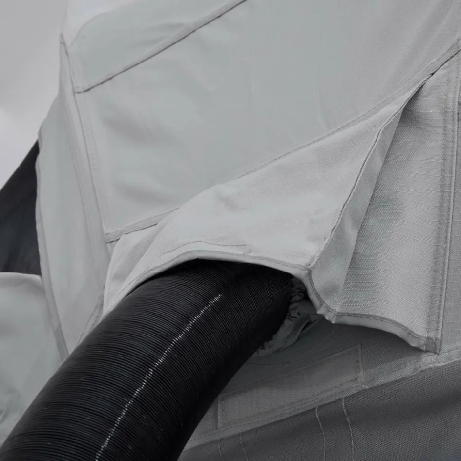 Für zusätzliche Klimakontrolle bietet das Dachzelt über einen integrierten Anschluss für Heizung oder Lüfter. So lässt sich die Temperatur im Inneren sowohl bei Hitze als auch bei frostigen Bedingungen individuell regulieren.