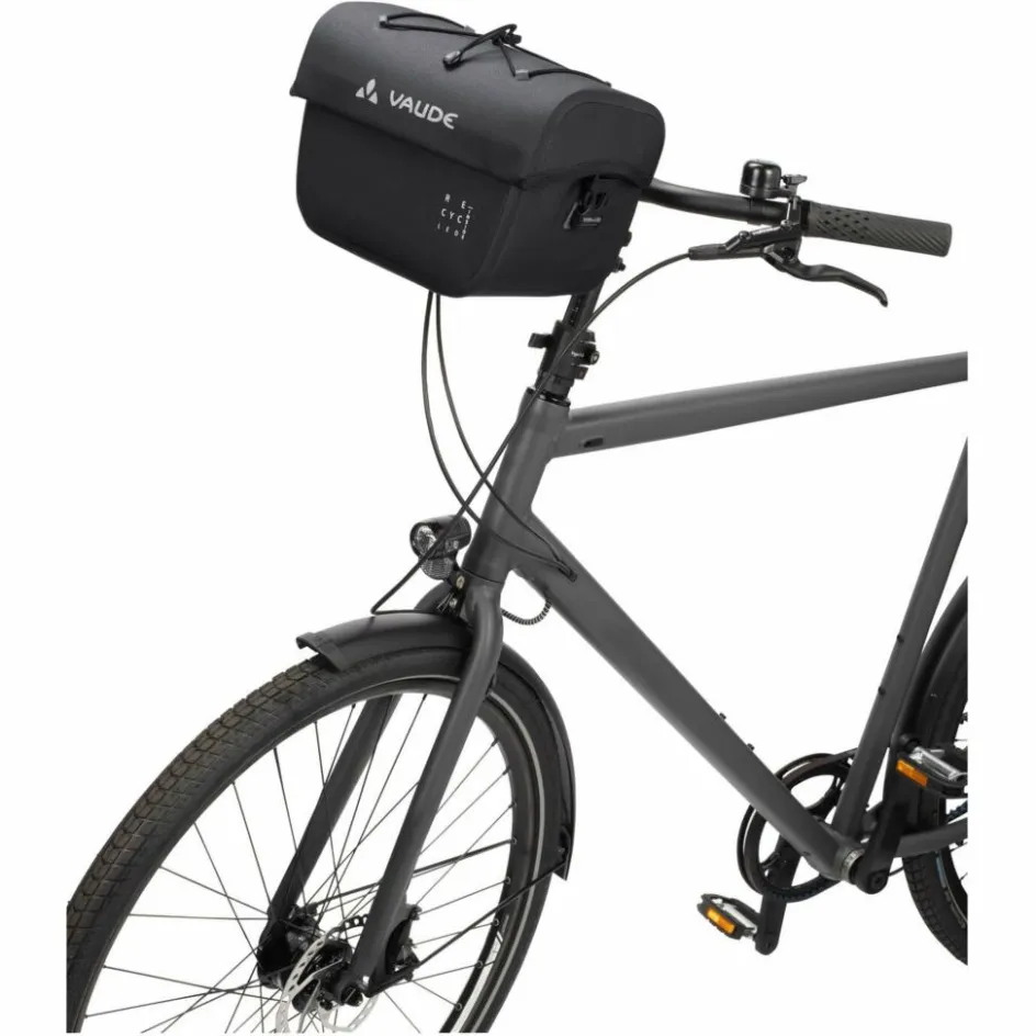 Die Vaude Aqua Box in der sehr nachhaltigen Variante: Hier bekommst du die praktische Lenkertasche mit durchweg recyceltem Material und PVC-freier, wasserdichter PU-Beschichtung.