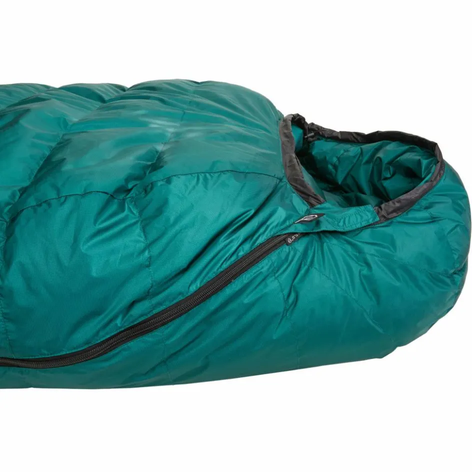 Ein umlaufender Wärmekragen und ein isolierter Abdecksaum entlang des Reißverschlusses verhindern effektiv Wärmeverluste. Dank des großzügigen Schnitts bietet der Schlafsack auch bei dickeren Bekleidungsschichten genügend Platz. Ideal also für längere Aufenthalte im Zelt oder Biwak.
