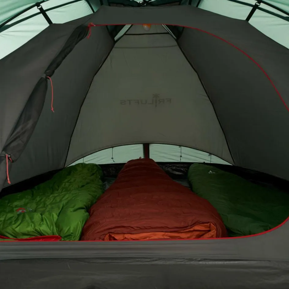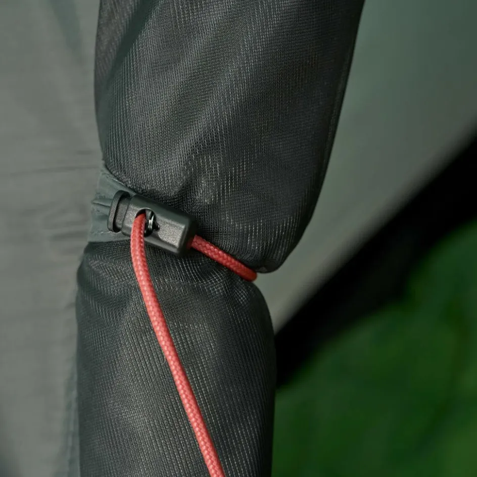 Viel Platz für bis zu 3 Personen durch die großzügige Innenzeltbreite. In der Apsis lassen sich Gepäck und Rucksäcke verstauen. Die Lüfter in Zelthimmel und Apsis sorgen bei warmen Temperaturen für optimale Luftzirkulation. Wem das im Sommer noch nicht reicht, der kann die Zeltrückwand im unteren Bereich über die komplette Länge nach oben wickeln, um für noch mehr Durchzug zu sorgen.
