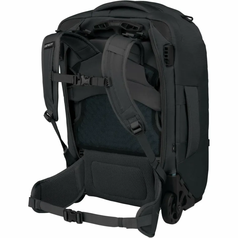 Die 90 mm großen Profilrollen verzeihen Unebenheiten und kleine Hindernisse auf dem Untergrund ohne Probleme. Stoßen die Rollen doch Mal an ihre Grenzen, öffnest du den Reißverschluss am Rücken und ein belüftetes Tragesystem mit breitem Hüftgurt kommt zum Vorschein. Dank des stabilen Rahmens des Farpoint Fairview 36 Wheels profitierst du dabei von einer ausgezeichneten Lastenübertragung und die Reisetasche trägt sich auch über längere Strecken äußerst bequem – dank des Netzrückens auch an warmen Tagen.