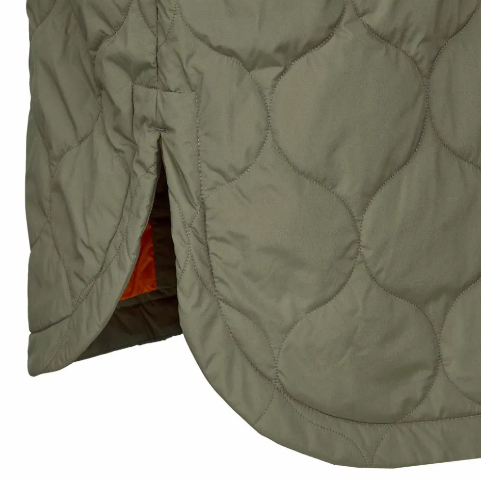 Der leichte Übergangsmantel besteht aus recyceltem Polyester und ist dank seiner PFC-freien DWR-Imprägnierung wasserabweisend. Zusätzlich ist sein Außenmaterial windabweisend, sodass du auf deinen Waldspaziergängen vor wechselhaftem Wetter gefeit bist. Für Wärme sorgen eine leichte Kunstfaserisolation und eine lässige Kapuze mit Kordelzug.