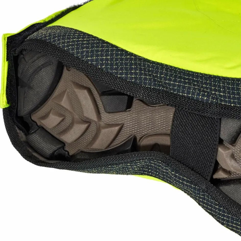 Das Anlegen der Überschuhe ist schnell erledigt. Der Klettverschluss auf der Rückseite kann auf ganzer Länge geöffnet werden, so dass du nur noch mit dem Schuh hineinschlüpfen brauchst. Damit du auch auf einer Schiebepassage die Überschuhe anbehalten kannst, schützt dickes Kevlarmaterial auf der Unterseite vor Beschädigungen.