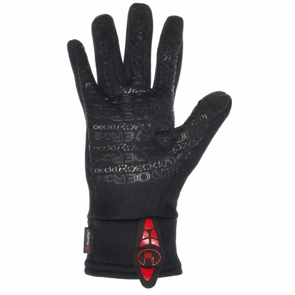 Mit Daumen und Zeigefinger lassen sich Touchscreens bedienen und die Handfläche mit Silikon-Aufdruck bietet einen guten Griff am Lenker oder Trekkingstock. An den gut schließenden, langen Bündchen befindet sich eine rot silikonsierte Anziehhilfe.