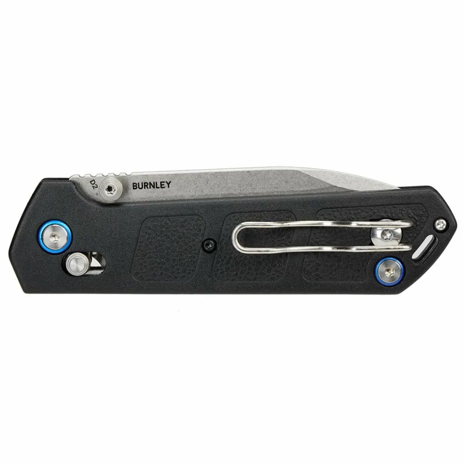 Das geradlinig designte Kihon DC 2.0 wurde vom US-amerikanischen Messermacher Lucas Burnley entworfen und wirkt auf den ersten Blick angenehm schlicht. Auf den zweiten Blick fallen schöne Details auf: blau anodisierte Schrauben am Griff, der umsetzbare Taschenclip sowie die kugelgelagerte, satinierte Klinge aus D2-Stahl. Sie lässt sich über den herausschraubbaren Daumenpin samtweich ausklappen und arretiert sicher dank Crossbar-Lock. D2-Stahl zeichnet sich durch seine hohe Verschleißfestigkeit aus und hält die Schärfe sehr gut, selbst bei regelmäßiger Nutzung. Zum Nachschärfen empfehlen wir daher die Verwendung eines hochwertigen Messerschärfers.