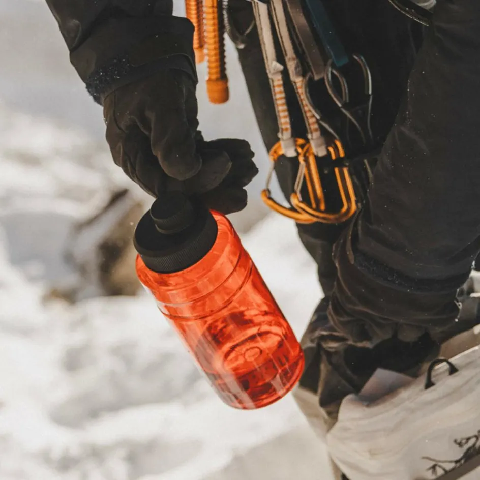 Der Deckel mit weiter Öffnung ist 100 % auslaufsicher und lässt sich bei Bedarf gegen einen Deckel mit extra Trinköffnung austauschen. Zusammen mit dem geringen Gewicht ist die Flasche damit für alle Touren gemacht, bei denen es auf jedes Gramm ankommt.