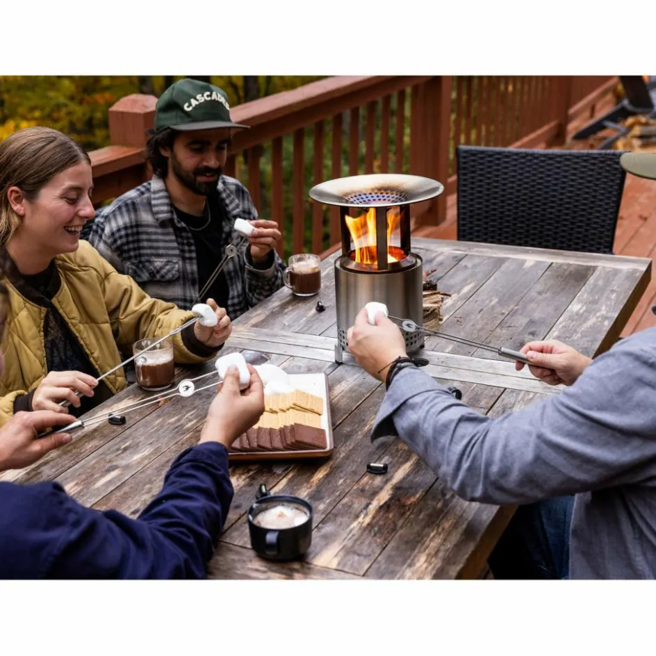 Der Mesa XL Heat Deflector ist schnell montiert: Einfach zusammenstecken und ganz ohne Werkzeug. Dank der stabilen und optimal platzierten Füße kannst du deinen Mesa XL mit Feuerholz beschicken, ohne den Heat Deflector abnehmen zu müssen.