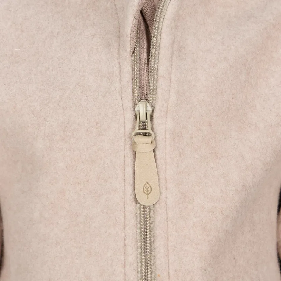 Bei dieser Jacke kommt kein gewöhnliches Kunstfaser-Fleece zum Einsatz, sondern ein Fleece aus nachhaltiger Bio-Baumwolle. Durch die Fleece-Struktur liegt die Jacke kuschelig weich auf der Haut. Außerdem wird die Körperwärme durch die Fleece-Struktur gut gespeichert. So blieben die Kleinen bei kühler Wetterlage mollig warm.