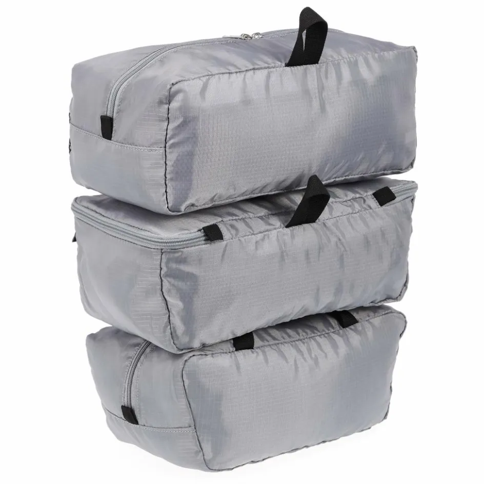Die Packing Cubes haben ein Volumen von 2x 6 L und 1x 5 L und passen übereinander perfekt in die Hinterradtasche. Die oberste und unterste Tasche besitzt je einen mittigen Reißverschluss, die mittlere Tasche einen umlaufenden Reißverschluss. Dadurch hast du deine Sachen schnell griffbereit.