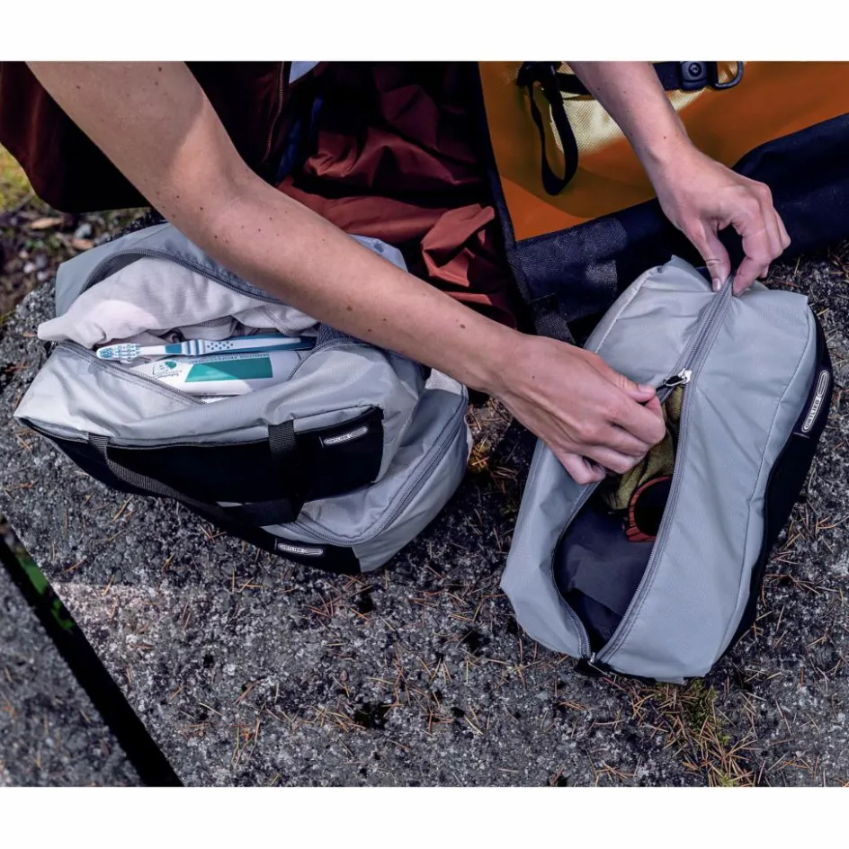 Die langlebigen Taschen bestehen aus Nylon. In ihnen kannst du saubere von schmutziger Wäsche trennen und hast Kleinteile schneller zur Hand, die sonst gerne in den Packtaschen nach unten rutschen. Außerdem hat jede Tasche außen und innen ein Netzfach, in dem du schnell erreichbare Kleinigkeiten verstauen kannst – Pass, Snack oder Ladekabel.