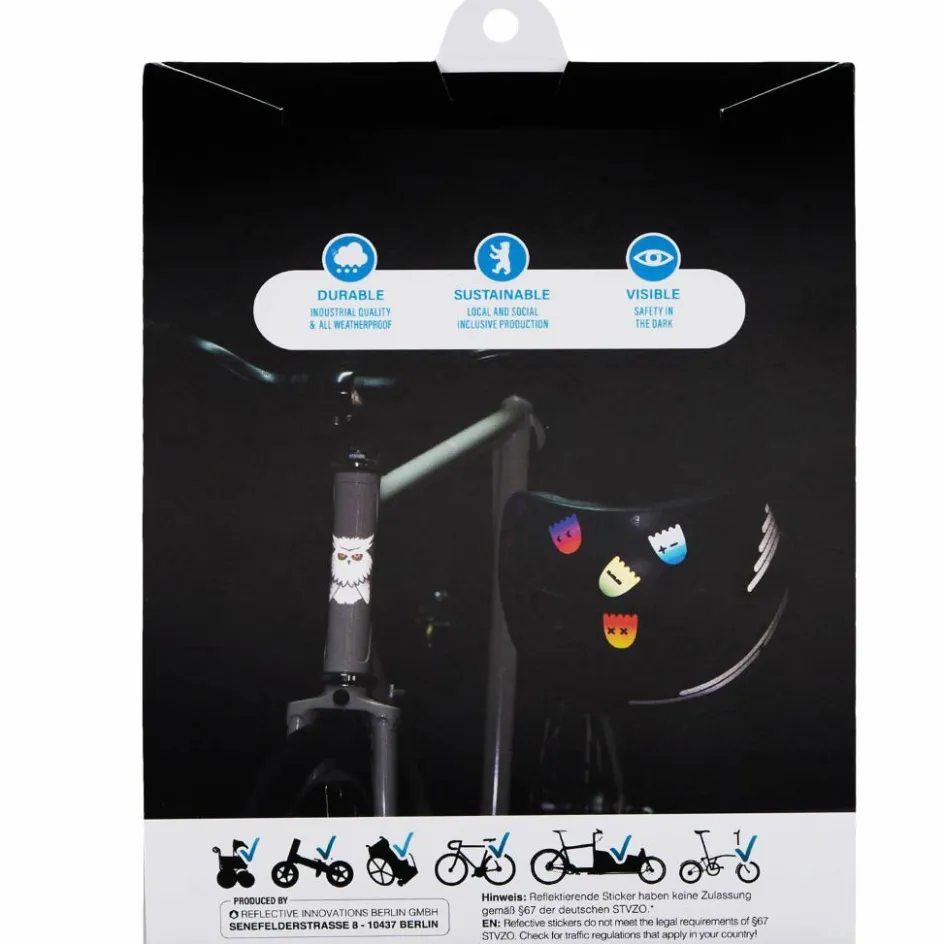 Mit dem waldigen Bären kannst du alle glatten Flächen verzieren, ob Lauf- oder Rennrad, Kinderwagen oder Camper. Auch auf deinem Helm macht sich der sympathische Meister Petz gut. Die Strahlkraft des Materials is dabei typisch Reflective Berlin: stark und lange haltbar!