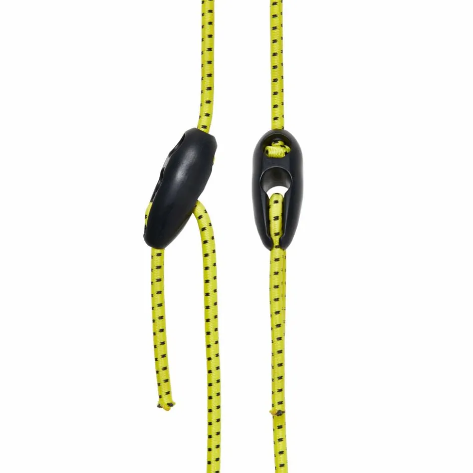 Mit den leicht eiförmigen Klemmstücken am Ende jeder Kordel stellst du die Länge des Riemens stufenlos ein und kannst dein Gepäck ganz nach Belieben straff oder eher leicht fixieren. Beim Klemmstück führst du die Kordel einfach durch die Bohrung und ziehst es dann in die Klemm-Nut. Fertig!