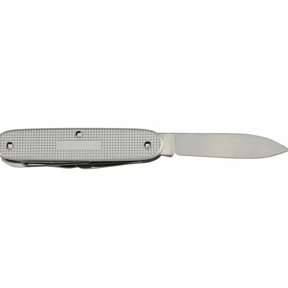 Alle Werkzeugteile des Messers bestehen aus rostfreiem Inox-Stahl (Werksbezeichnung 1.4110 – in den USA auch bekannt als 440A) mit einer Härte von 56 HRC. Es zeichnet sich durch eine mittlere Schnitthaltigkeit aus und kann auch von Anfängern leicht nachgeschärft werden. Mit etwas Übung gelingt es die Messerklinge auf Rasiermesserschärfe zu schleifen. Victorinox setzt bereits seit den Anfängen auf diesen bewährten Werkzeugstahl.
