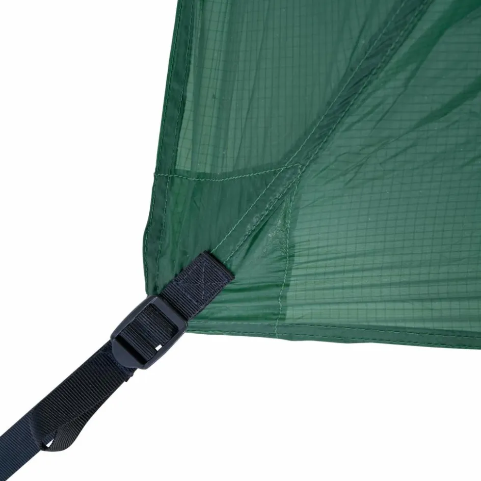 Und selbst wenn du kein Hüne bist, kannst du die zusätzliche Ecke im Innenzelt gut nutzen. Bekleidung und Ausrüstung kann hier geschützt vor Schmutz und Nässe platziert werden, ohne im Weg zu liegen.