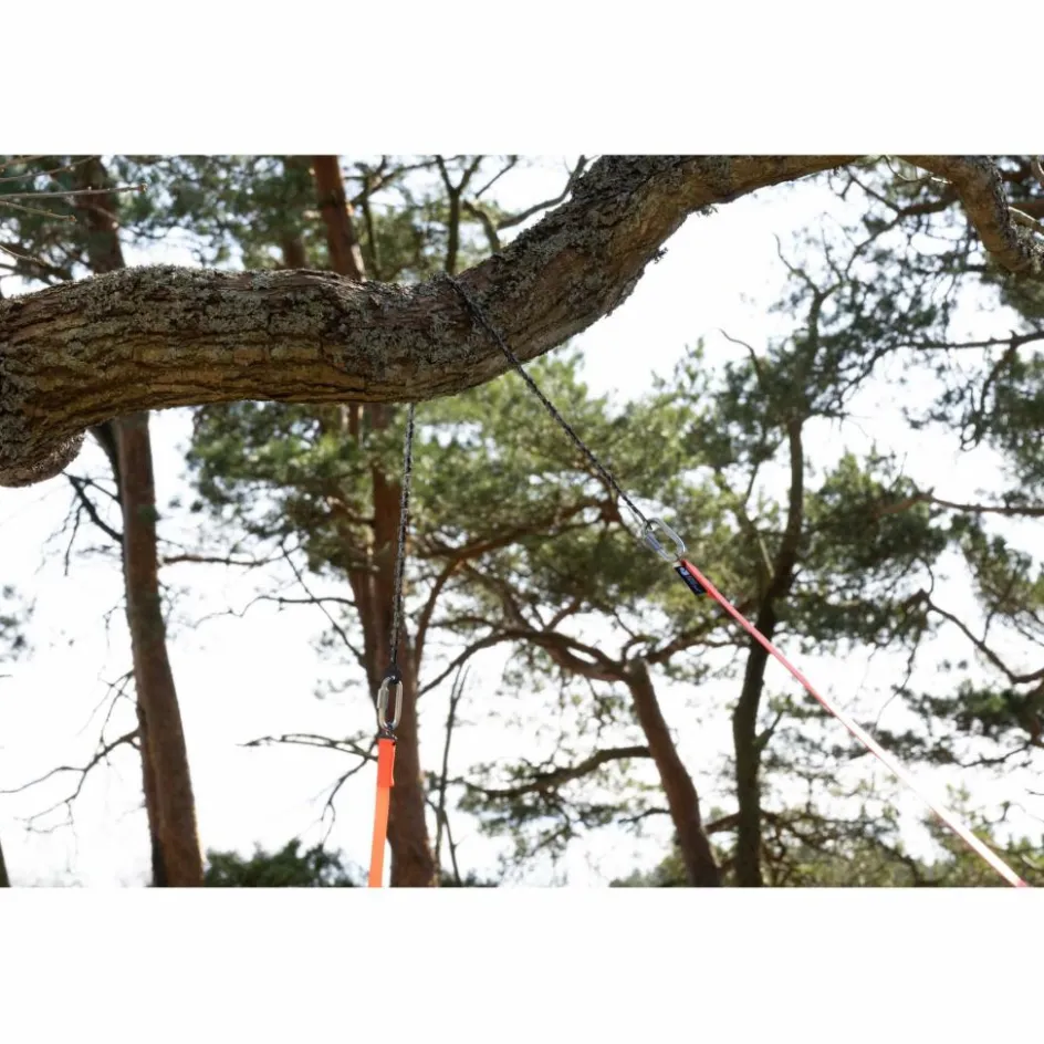 Wie auch immer die Säge auf dem Ast landet, sie ist immer in der Lage, das Holz zu sägen; die Zähne sind hierfür an beiden Seiten der Kette vorhanden (doppelseitige Kette). Außerdem sägen sie in beide Richtungen, als bei jedem Zug. Dank der langen Riemen, die an der Säge befestigt sind, kannst du beim Schneiden des Astes auf einen sicheren Abstand zurückgehen. So bist du auch vor herabfallen Astteilen sicher. Der Packbeutel ist innen schön hell, sodass der Inhalt immer gut zu erkennen ist. Eine extra Packtasche nimmt die Handkettensäge und die Karabiner auf.