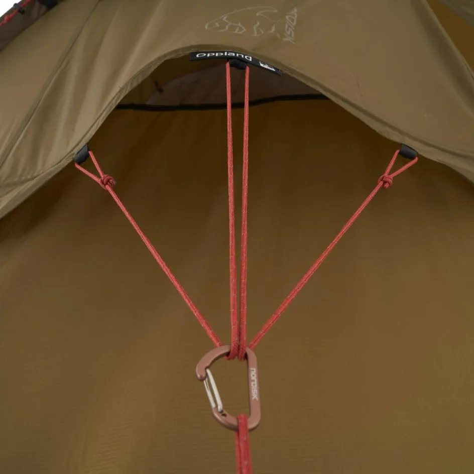 Das Oppland 2 PU ist ein preisgünstiges Tunnelzelt für Einsteiger. Es eignet sich für Touren mit viel Gepäck, das über Nacht in der Apsis einen geschützten Platz findet.