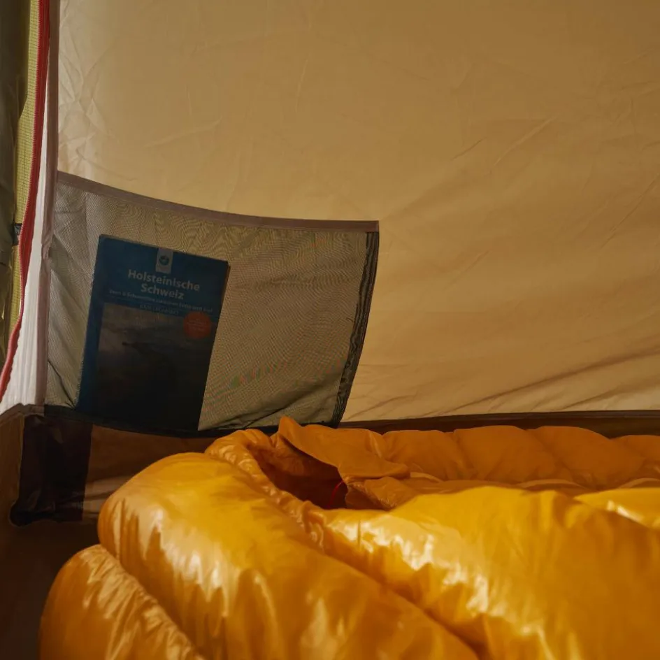 Das Außenzelt aus Polyester mit PU-Beschichtung ist für gelegentliche Outdoor-Aktivitäten in gemäßigten Breiten absolut ausreichend und bietet ein ausgezeichnetes Preis-Leistungs-Verhältnis. Der Einstieg ins Zelt erfolgt wahlweise durch den Seiteneingang oder den Eckeingang. Diesen kannst du bei Bedarf bis zum ersten Gestängebogen aufrollen. So kannst du geschützt in der Apsis sitzen und die Aussicht genießen oder in warmen Sommernächten für ordentlich Durchzug sorgen.
