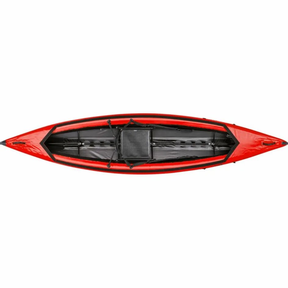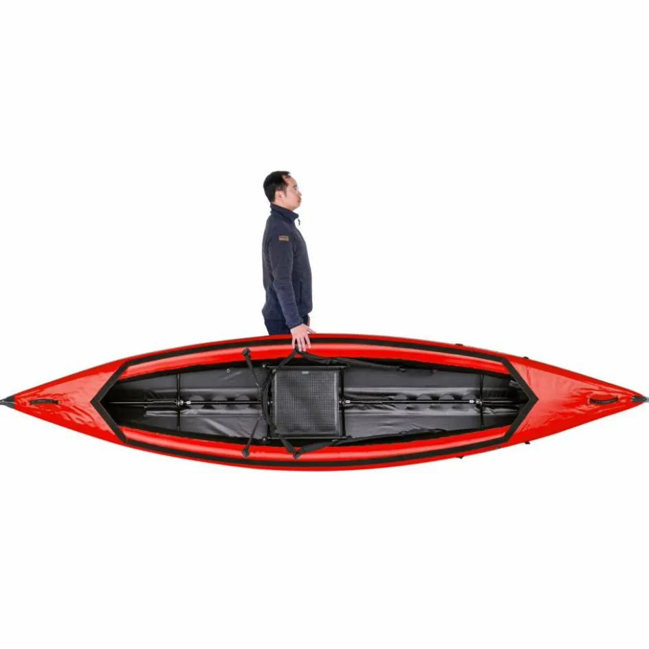 In dem mitgelieferten Packsack, der sich auch bequem als Rucksack tragen lässt, kannst du den Scubi XL mühelos zur Einsatzstelle transportieren. Vor Ort ist er schnell einsatzbereit: das aufs Wesentlichste reduzierte Gestänge ist fix positioniert und die Luftschläuche schnell gefüllt. Mit etwas Übung ist der Einsitzer innerhalb von 10 bis 15 Minuten fahrtüchtig!