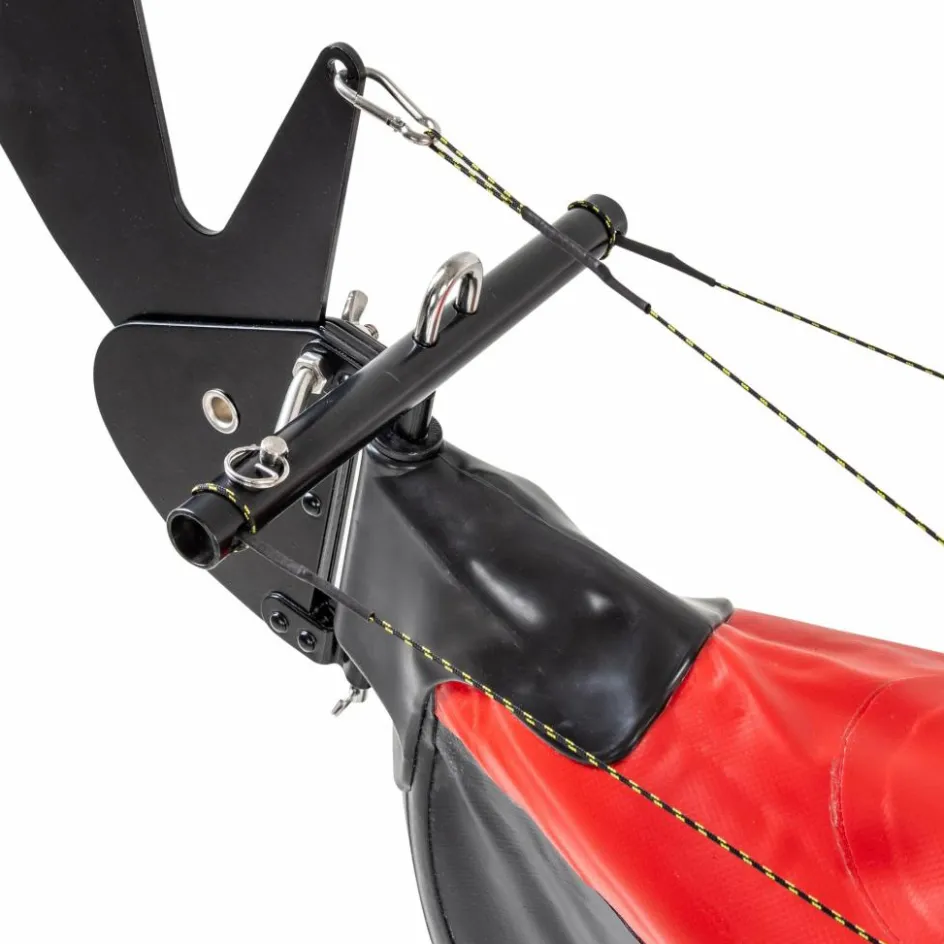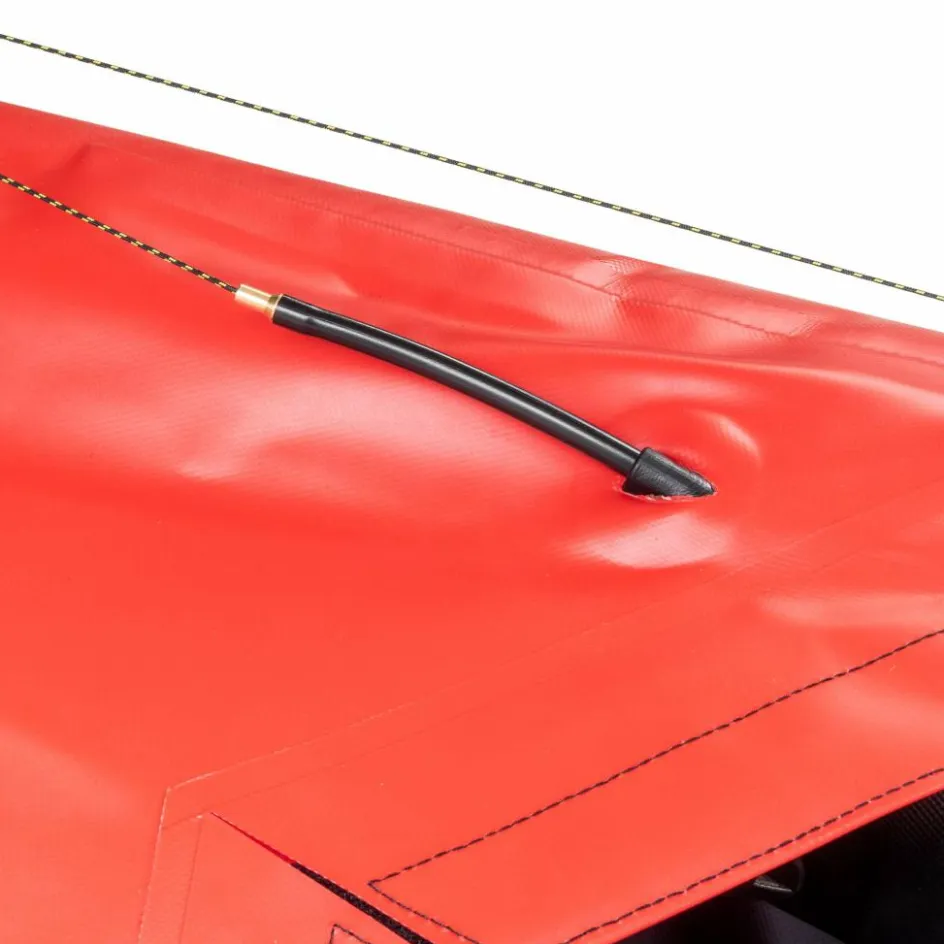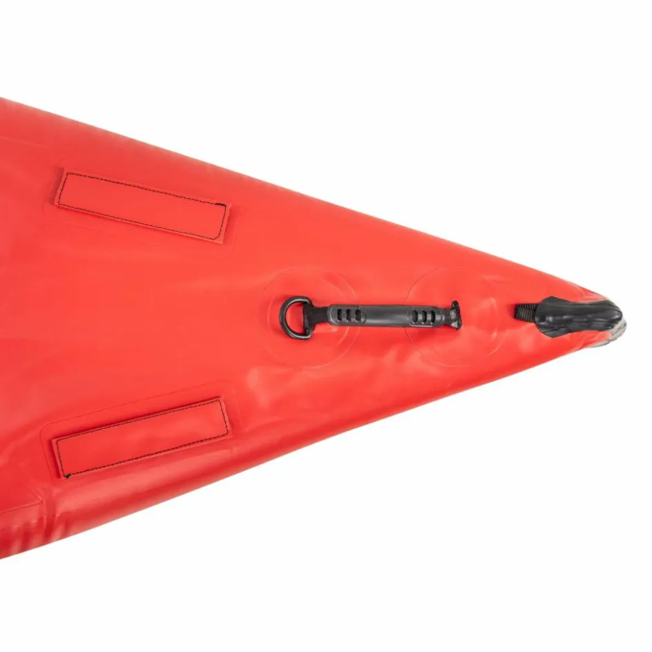 In dem mitgelieferten Packsack, der sich auch bequem als Rucksack tragen lässt, kannst du das Scubi mühelos zur Einsatzstelle transportieren! Vor Ort ist das Scubi schnell einsatzbereit: das aufs Wesentlichste reduzierte Gestänge ist fix positioniert und die Luftschläuche sind schnell gefüllt. Mit etwas Übung ist der Zweisitzer innerhalb von 10 bis 15 Minuten fahrtüchtig!