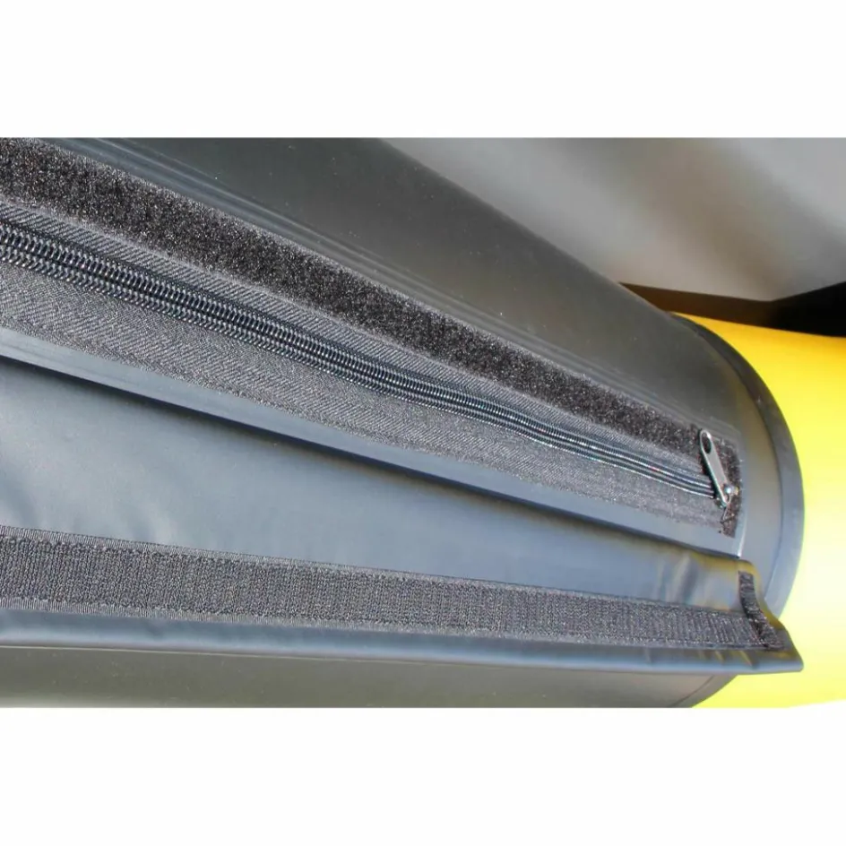 Die Luftschläuche des Trekraft Expedition sind beidseitig beschichtet und somit besonders geschützt. Der Boden wurde extra verstärkt und überall, wo es möglich ist, wurden die Verbindungen verschweißt und nicht nur vernäht oder verklebt. Die beidseitig integrierten Packtaschen sind mit abgedeckten Reißverschlüssen zur einfachen Beladung ausgestattet.