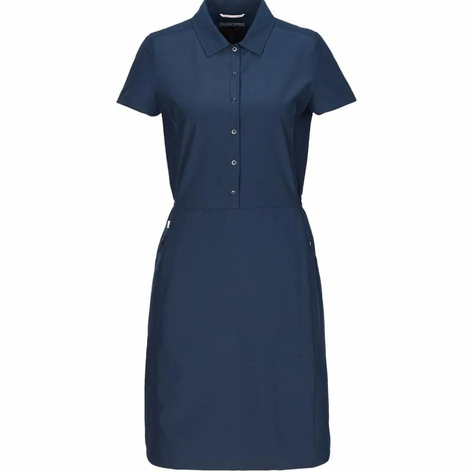 Das pflegeleichte Kleid bekommt durch den umgeschlagenen Kragen und die halblange Druckknopfleiste einen eleganten Look. Die teilelastische Taille lässt eine feminine Silhouette entstehen und wird durch eine Bewegungsfalte im Rücken harmonisch ergänzt. Für die schnelle Wäsche unterwegs stehen dir praktische Drying Loops zur Verfügung.