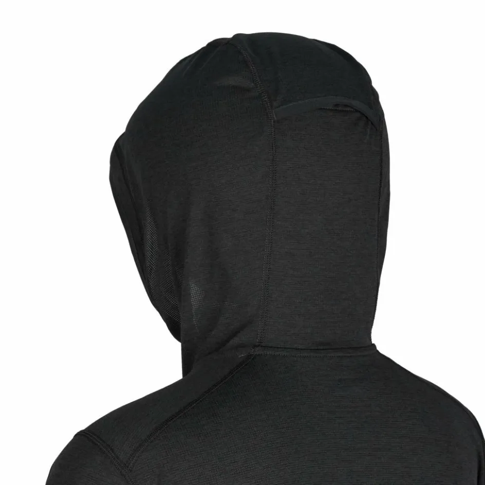 Leichtes und bequemes Kleid für Outdoor-Aktivitäten und Reisen in warmen Klimazonen. Hergestellt aus einem technischen Jersey-Strick, der Feuchtigkeit ableitet und schnell trocknet, um auch an sonnigen Tagen maximalen Komfort zu bieten. Lange Ärmel und Kapuze bieten Schutz vor der Sonne, während Daumenlöcher ein Hochrutschen der Ärmel verhindern. Der passgenaue Schnitt ist locker genug, um die Luft zirkulieren zu lassen. Zwickel unter dem Arm bieten zusätzliche Bewegungsfreiheit.