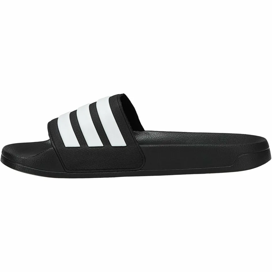 Da vollständig aus synthetischen Materialien gefertigt, eignet sich die Adilette besonders gut für alles, was mit Wasser zu tun hat. Egal ob Strand oder Paddelurlaub, die Freizeitsandale trocknet im Handumdrehen und lässt sich besonders leicht reinigen.