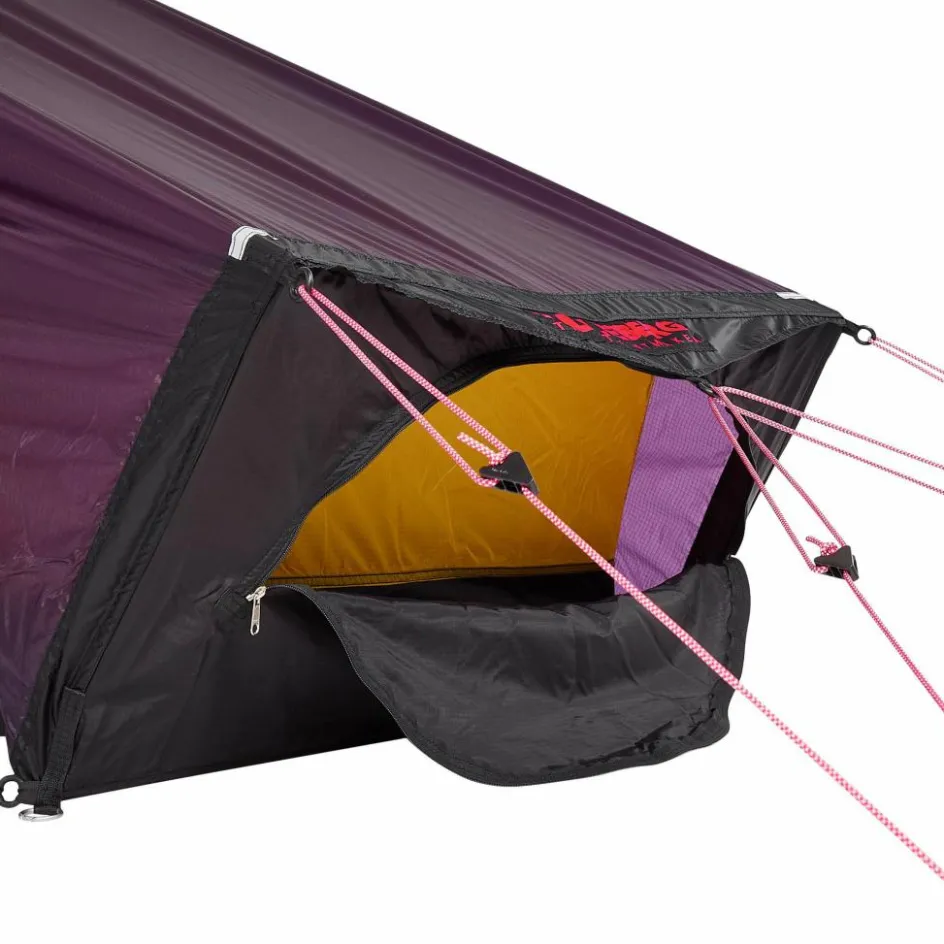 Das Außenzelt wird mit einem langen Gestängebogen aufgestellt. Das Aufstellen ist durch das eingehängte Innenzelt auch bei Regen kein Problem. Die seitliche Apsis bietet ausreichend Platz für Rucksack und Schuhe. Die Belüftung erfolgt über zwei von außen bedienbare, verschließbare Ventilationsmöglichkeiten an Kopf- und Fußende sowie einen Lüfter im Dach.
