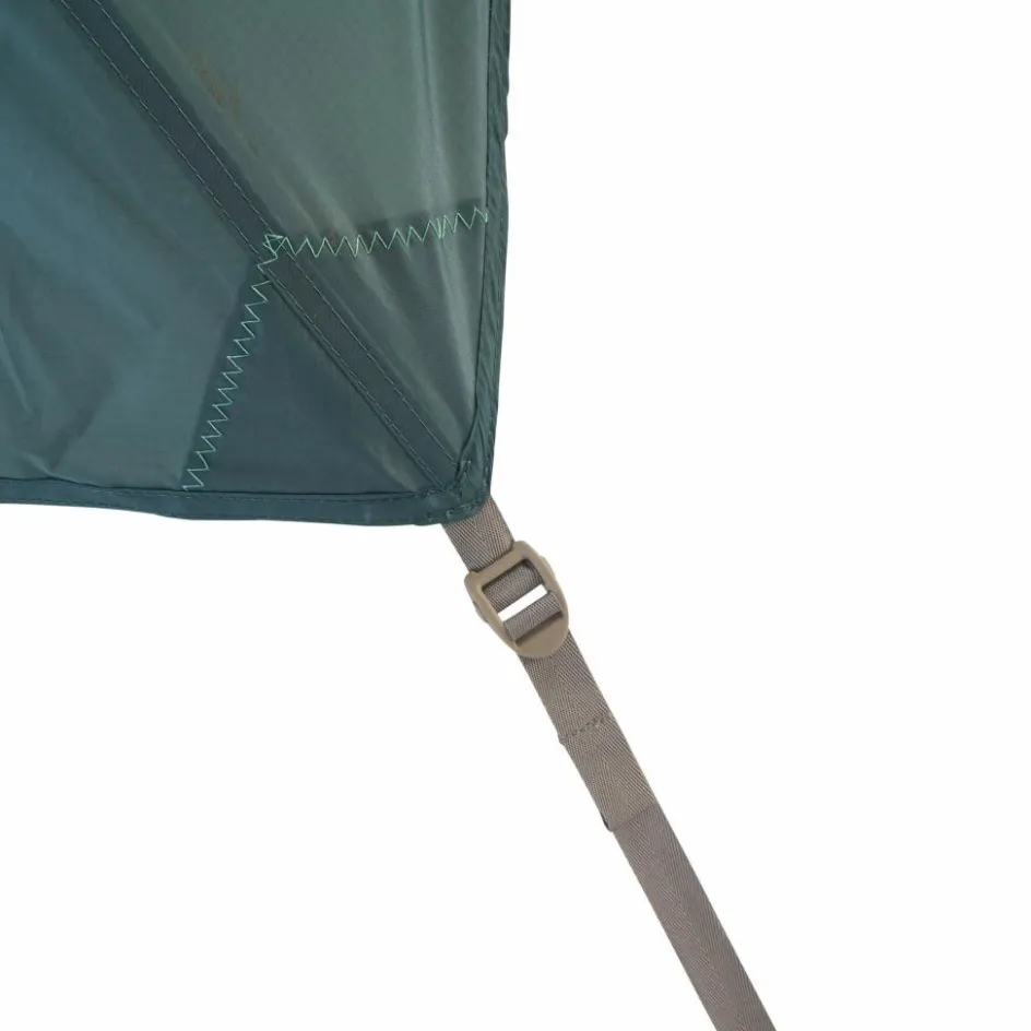 Praktische Details heben das Zelt von anderen Modellen ab, dazu gehören die optimierten Belüftungsoptionen. So kannst du in trockenen und warmen Nächten die Rückseite bis zum ersten Gestängebogen aufrollen. Alternativ nutzt du die beiden großen, abdeckbaren Fenster in der Apsis, um für reichlich Frischluft zu sorgen.