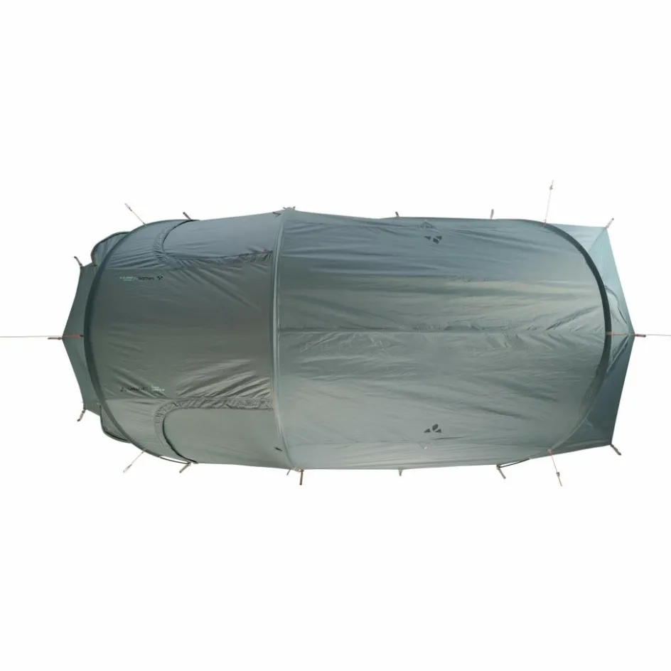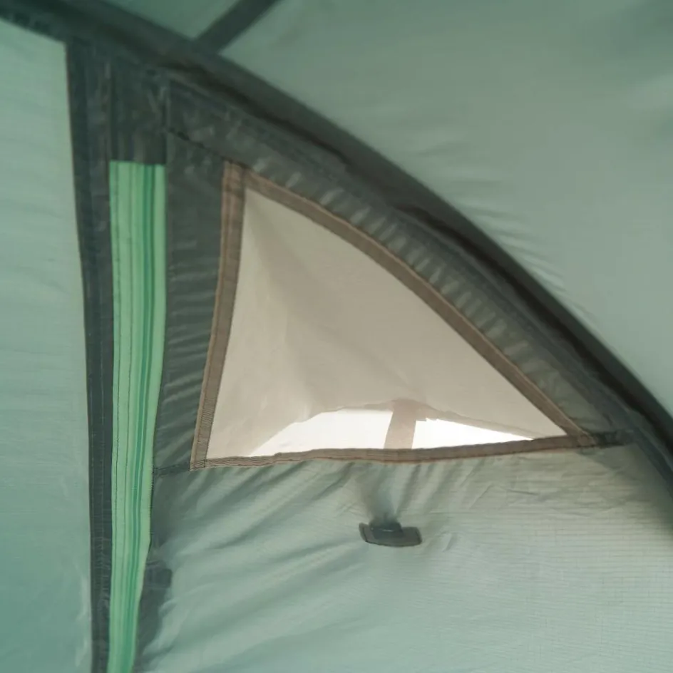 Drei Eingänge, eine großzügige Apside und ein komfortabler Eingangsbereich bieten Flexibilität und Schutz bei jedem Wetter. Hervorragende Belüftung wird durch Belüftungshutzen und eine Ventilationsöffnung im hinteren Bereich gewährleistet. Das eingehängte Innenzelt ermöglicht einen regensicheren Aufbau.
