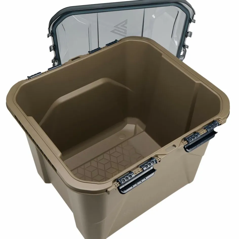 Die Ausrüstungsbox besitzt einen durchsichtigen Deckel, sodass du von außen sehen kannst, was sich im Inneren befindet. Das können neben Getränkeflaschen natürlich auch weitere Lebensmittel und Kochzubehör sein. Praktisch: Der Deckel kann von beiden Seiten geöffnet werden und bei Bedarf komplett abgenommen.