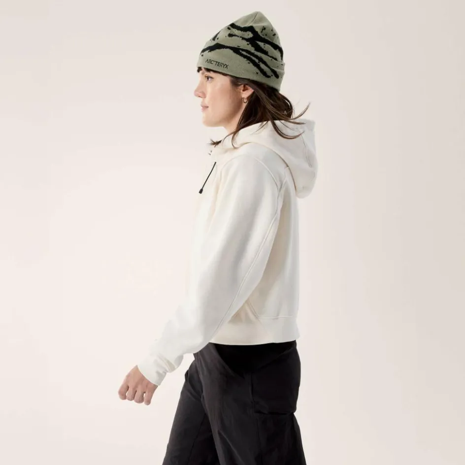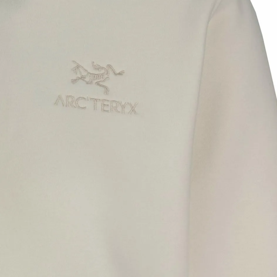 Die kurz geschnittene Kapuzenjacke besteht aus einem Mix aus Baumwolle und Polyester. Durch den hohen Anteil an Baumwolle ist der Hoody pflegeleicht und strapazierfähig. Der Polyester-Anteil lässt ihn nach schweißtreibenden Aktivitäten schneller wieder trocknen (im Vergleich zu einem Hoody aus reiner Baumwolle). Die weiche Innenseite liegt besonders angenehm auf der Haut. Mit seinem cleanen Design mit Arc’teryx Logo im Brustbereich und seinem lockeren Schnitt ist die Jacke perfekt für den aktiven Alltag und entspannte Abende auf dem Sofa.