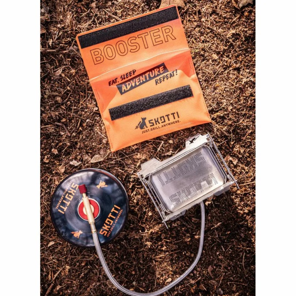 Was wäre Skotti ohne eine Grillfunktion? In Kombination mit dem separat erhältlichen Skotti Mini (siehe unter „Passend dazu“) verwandelst du den Booster in einen vollwertigen Grill. Das bereichert die Campingküche um Grillfleisch, Grillgemüse, Scampispieße und vielem mehr!