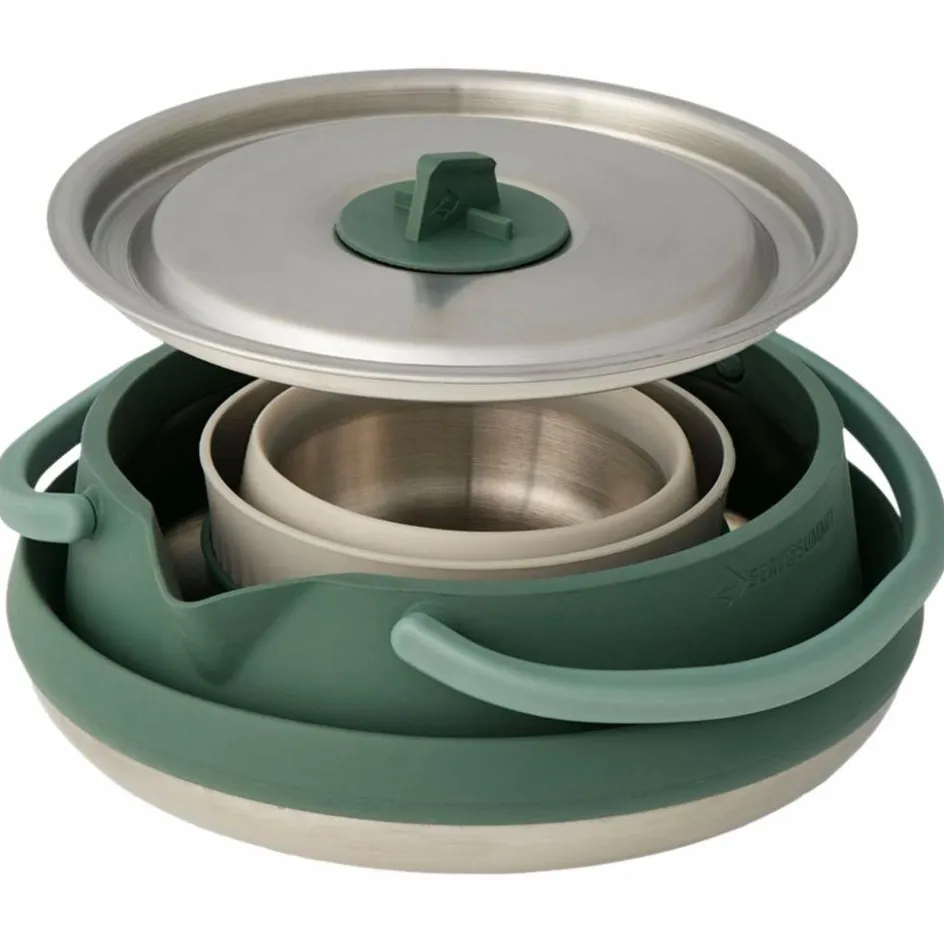 Die Detour-Kollektion ist zwar kein Leichtgewicht, aber unglaublich robust und klein im Packmaß. Der Mix aus kräftigem Edelstahl und Silikon ermöglicht es dir, die Produkte platzsparend zusammenzufalten und zu verstauen. Einige Teile lassen sich auch ineinander stapeln. Hier klappert nichts, was diese Serie zur idealen Wahl für alle motorisierten Reisen macht.