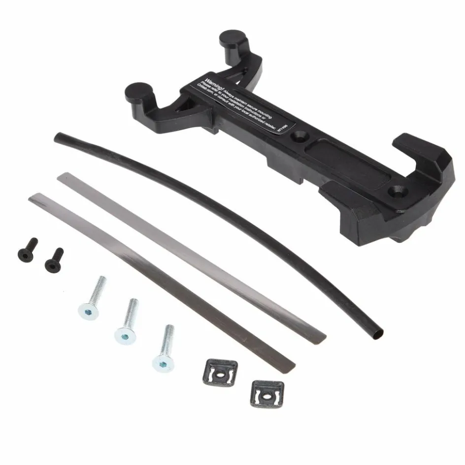 Bei einer Gabel ohne spezielle Schraubenaufnahmen muss der Gabeldurchmesser konstant bleiben (sich die Gabel also nicht verjüngen), damit der Adapter zuverlässigen Halt findet. Federgabeln eignen sich für diese Befestigungsart. Oder auch dein Scooter! Die Rohre müssen hierfür einen konstanten Durchmesser von 30 mm bis 42 mm haben.