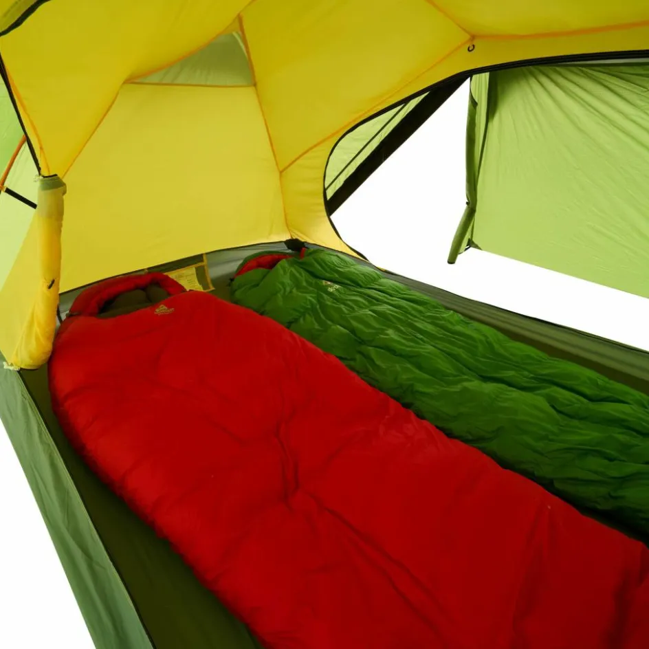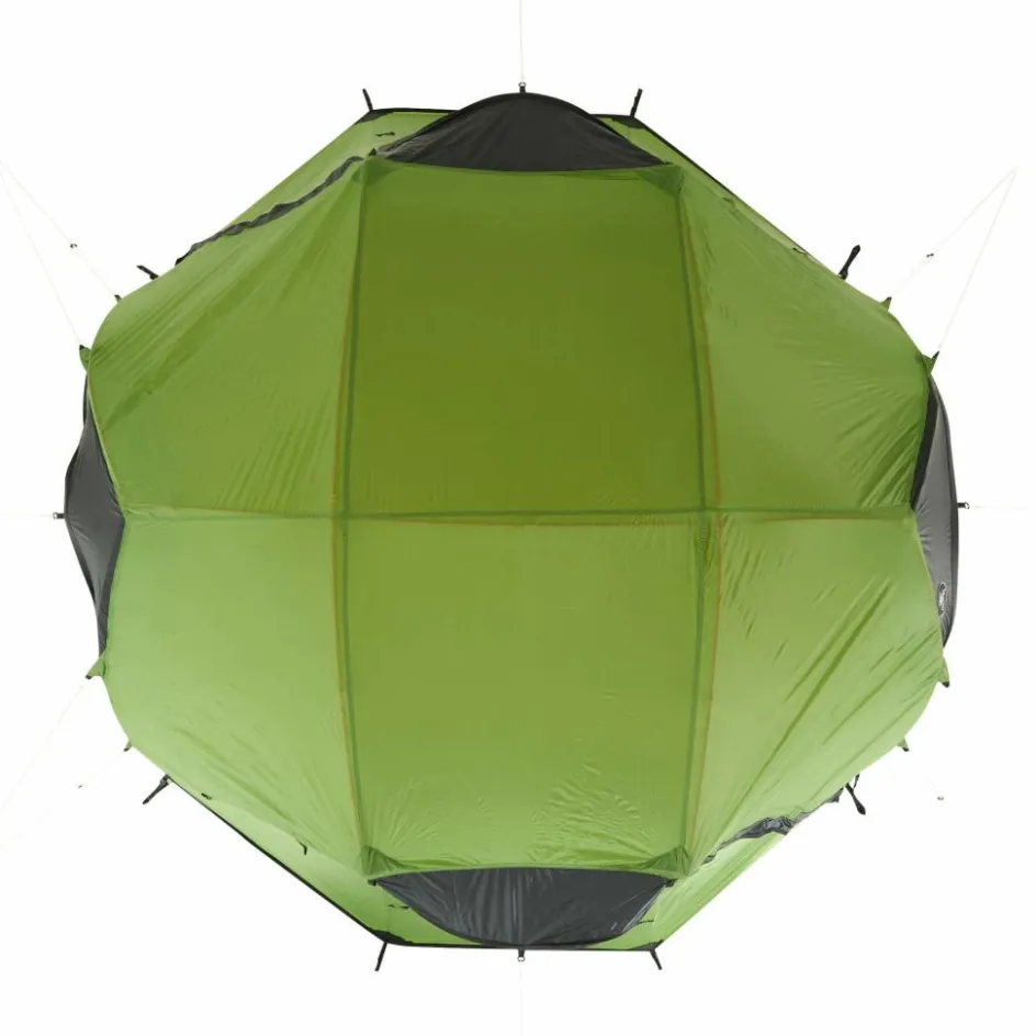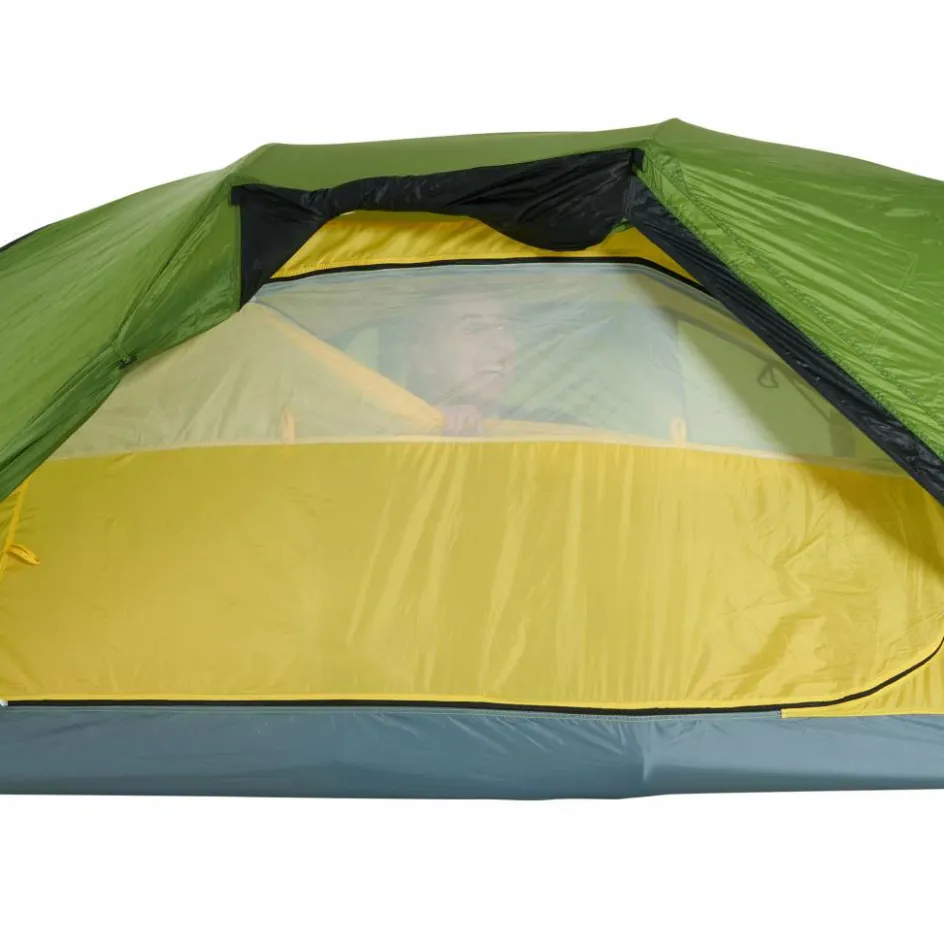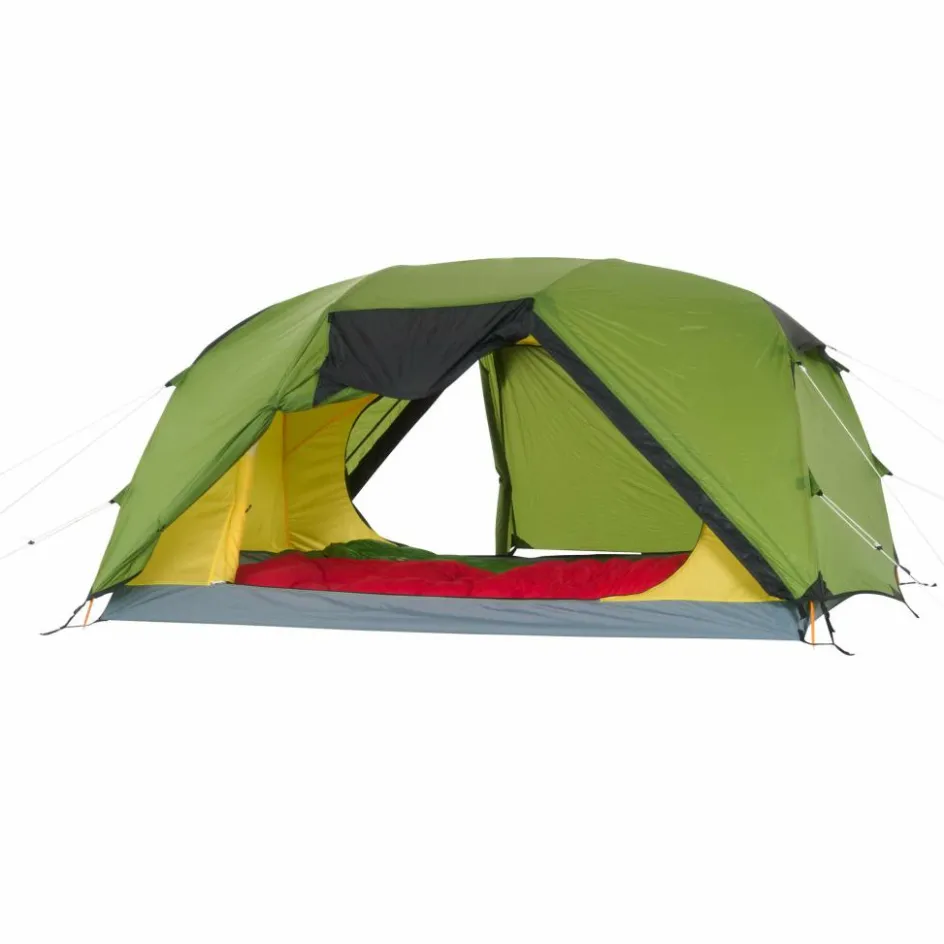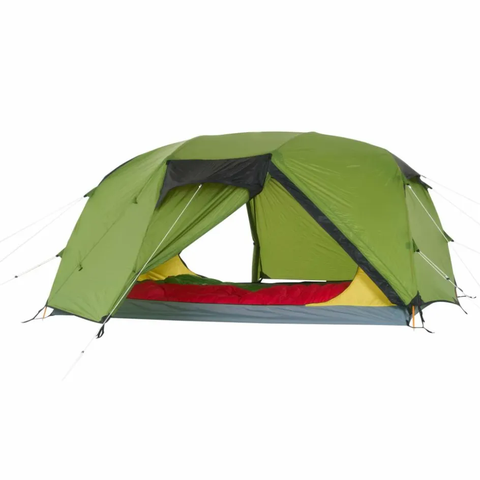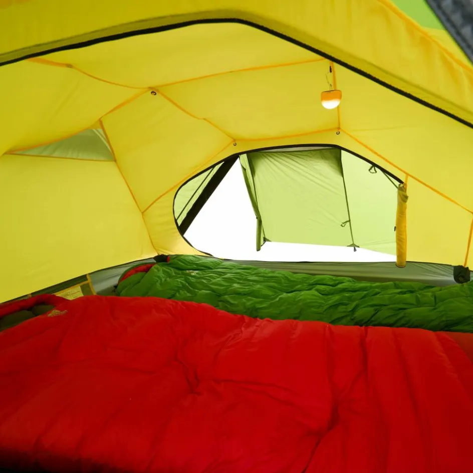 Bist du unterwegs und es herrscht schlechtes Wetter? Oder möchtest du einfach einen Tag an einem schönen Ort verbringen, ohne dabei in einem Zelt eingeengt zu sein? Dann ist das Hamra Light in der HC-Version genau das Richtige für dich. Durch das Gestänge mit hoch angesetzten Kreuzpunkten wird der Fuß- und Kopfbereich weit aufgespannt, was zu steilen Seitenwänden führt. In dieser Version kommen zwei zusätzliche Querbögen im Kuppelbereich zum Einsatz, die das Innenzelt weiter aufspannen und erheblich mehr Platz im Kopfbereich schaffen. So bietet das Innenzelt mehr Bewegungsfreiheit als andere Modelle. Für eine ausreichende Belüftung sorgen zwei große Hochlüfter an den Querseiten sowie zwei kleinere Lüfter an den Apsiden. Die Türen des Innenzelts bestehen aus großflächigem Mesh-Material, die bei Bedarf teilweise oder vollständig abgedeckt werden können.