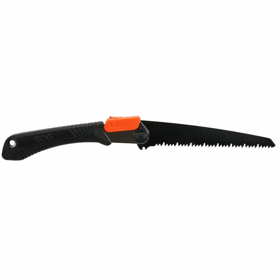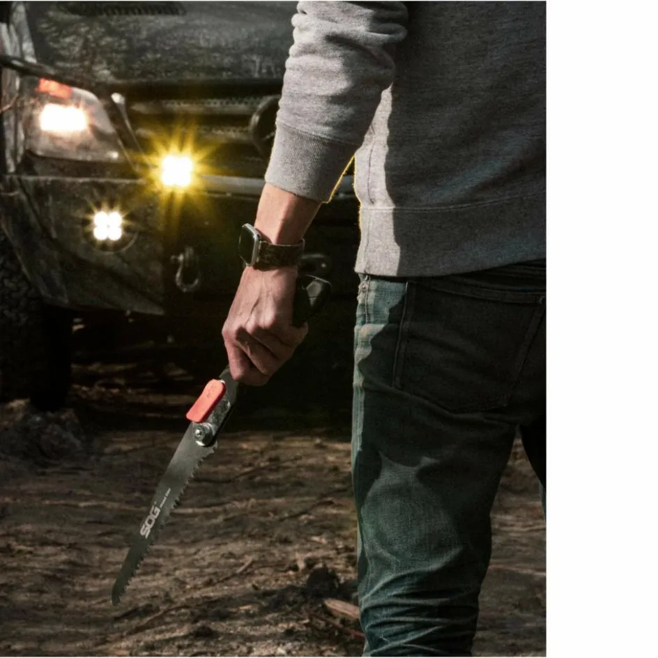Die SOG Klappsäge bietet mit einer Länge von 44 cm eine gute Balance zwischen Nutzbarkeit und Verstaubarkeit. Ihre 21 cm lange, gehärtete Sägeklinge eignet sich zum Sägen von Ästen und kleinen Stämmen.