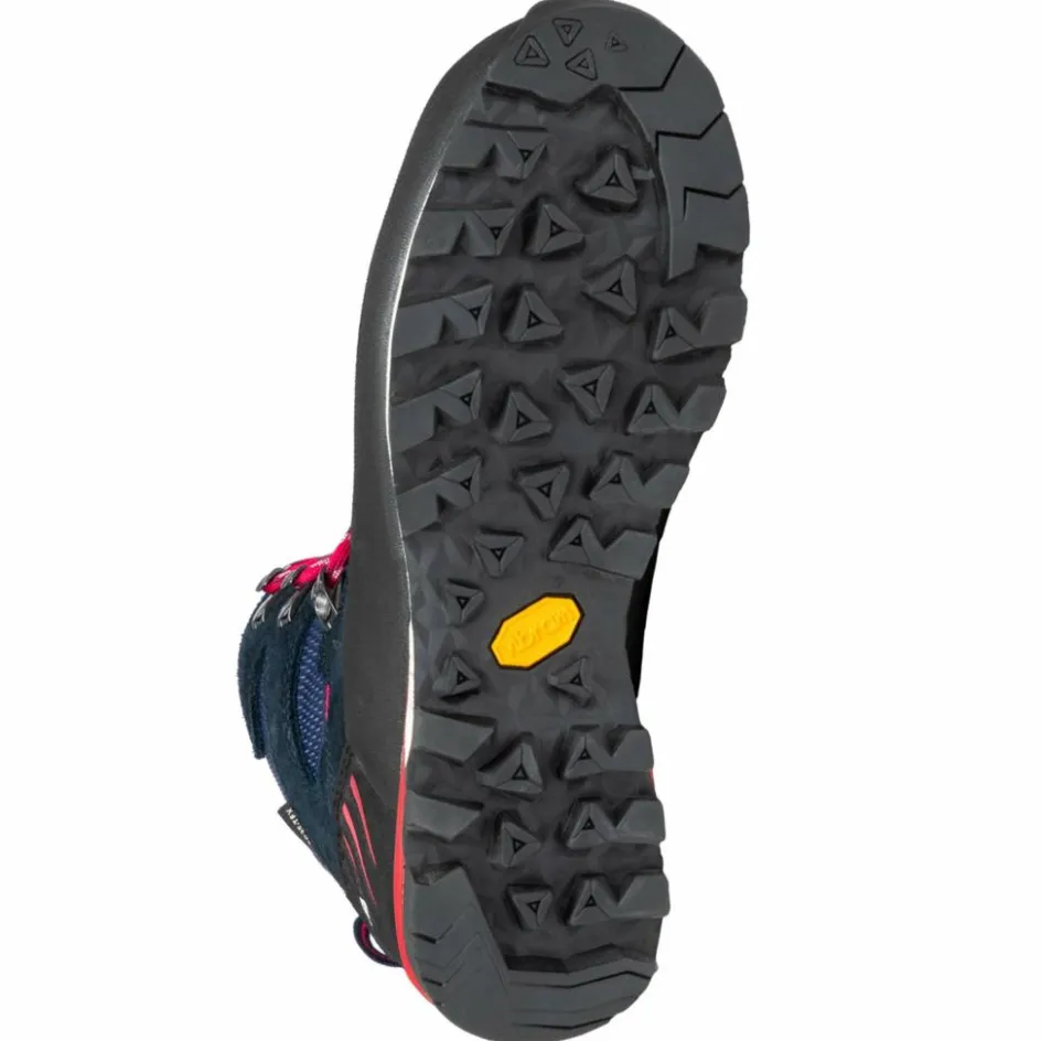 Die Zwischensohle ist aus PU, TPU (Steigeisenauflage) und EVA gefertigt. Während im hinteren Bereich PU zum Einsatz kommt und für eine optimale Dämpfung sorgt, wird im Vorfußbereich auf EVA zurückgegriffen. Dadurch wird die Präzision im Antritt verbessert. Optimal in steilem Gelände, wenn dir lediglich schmale Tritte zur Verfügung stehen.