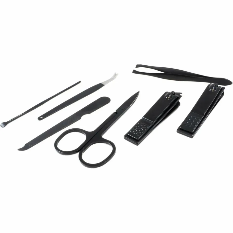 Mit diesem kompakten Set hast du alle wichtigen Werkzeuge für die Nagelpflege schnell zur Hand. Das Kunstlederetui öffnet auf Knopfdruck und ermöglicht den Zugriff auf sieben Tools.