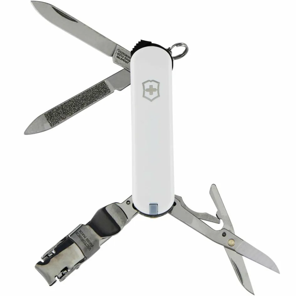 Taschenmesser mit scharfem Nagelknipser, Nagelfeile und Schere in gewohnt hochwertiger Schweizer Qualität. Das kleine Taschenmesser kann mit dem Federring am Schlüsselbund fixiert werden.
