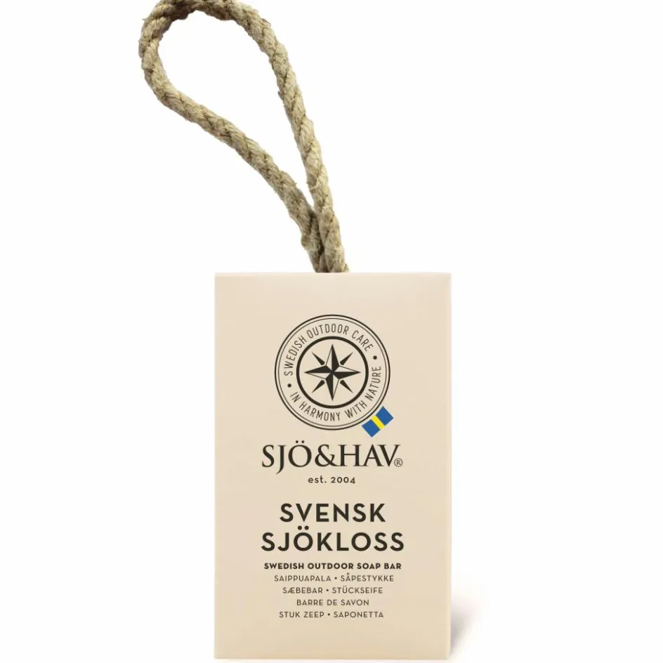 Die Sjökloss kann sowohl im Süßwasser als auch im Salzwasser angewendet werden und eignet sich auch gut als Rasierschaum. Sie wurde auf Basis von Kokosnuss und Raps hergestellt und enthält weder Konservierungsstoffe noch Palmöl. Das Hanfseil ermöglicht das Aufhängen der Seife zum Trocknen oder du hängst dir die Seife während des Duschens um dein Handgelenk, damit sie nicht auf den Boden gelegt werden muss.
