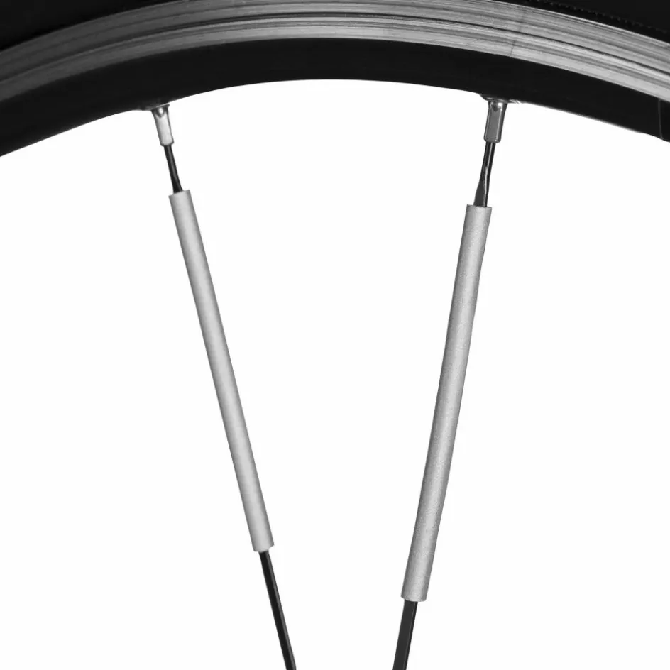 36 Speichenreflektoren mit Rundum-Sichtbarkeit. Hergestellt aus 3M Scotchlite und mit StVZO-Zulassung. Einfach in die Speichen klicken; sie eignen sich für einen Speichendurchmesser von 1,8 – 2 mm.