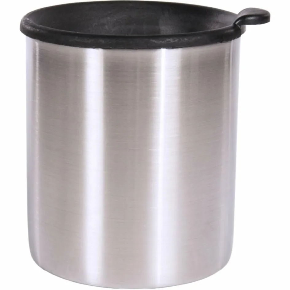 Doppelwandiger Edelstahlbecher ohne Henkel, aber mit Deckel und 250 ml Fassungsvermögen. Aus hochwertigem 18/8 Edelstahl gefertigt, ist dieser doppelwandige Edelstahl-Becher unzerbrechlich und robust, leicht zu reinigen und lebensmittelecht.