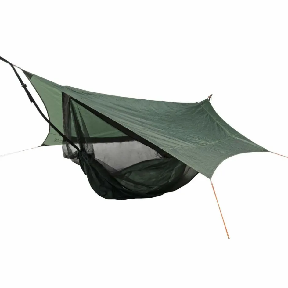 Extrem praktisch: Du hängst deine Hängematte auf und hast Moskitonetz und Tarp gleich mit am Start. Außerdem hat die Traveller Camp ein Isomattenfach für die Isolation von unten.