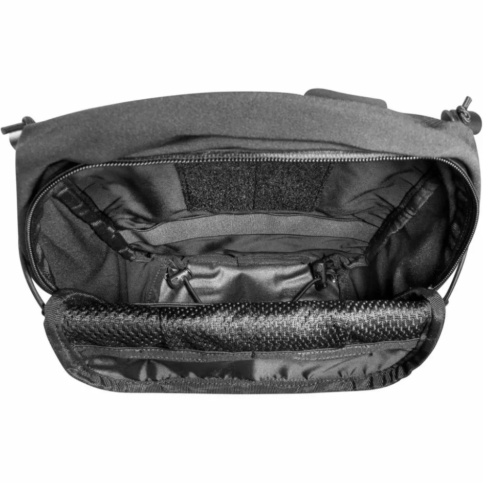 Zubehörtasche mit MOLLE-Reverse-System. Innen befindet sich MOLLE-Klett sowie eine Netztasche. Die Tasche ist zudem mit einer Trinksystemvorbereitung und dem entsprechenden Ausgang ausgestattet, und sie verfügt über eine Fronttasche mit vertikalem Reißverschluss. Die Seitenwände sind elastisch. Das gesamte System ist mit Bungee-Cord flach komprimierbar.