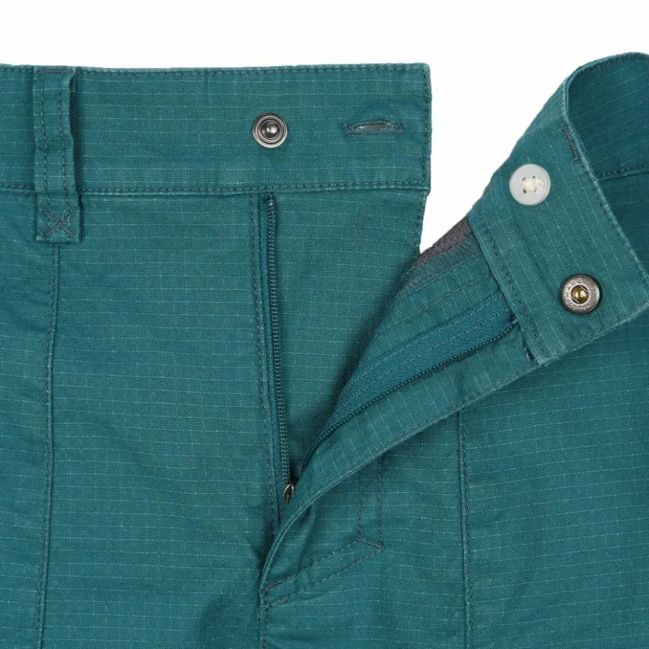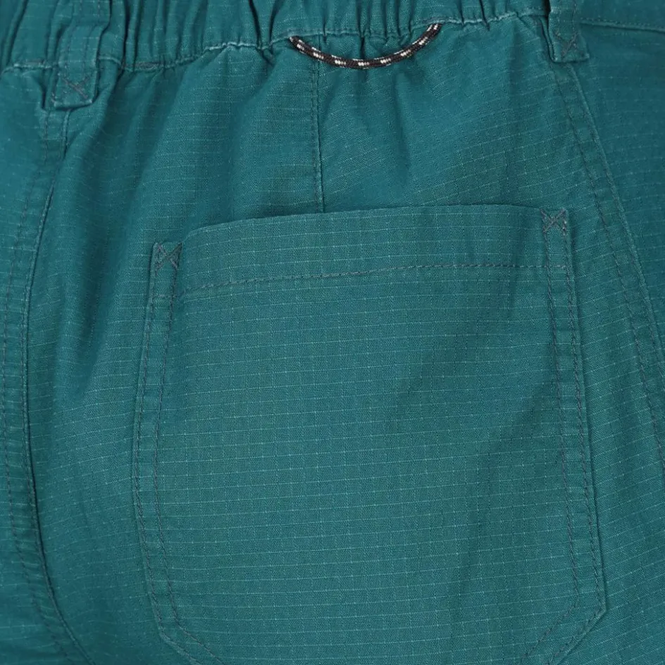 Durch den hohen Anteil an Baumwolle (98 %) verfügt die Shorts über Robustheit und ist gleichzeitig sehr pflegeleicht. Die Ripstop-Struktur verbessert die Strapazierfähigkeit der Hose zusätzlich, sodass sie beim Bouldern, Sportklettern oder Wandertouren die nötige Widerstandsfähigkeit beweist. Etwas Elasthan macht das Gewebe im Vergleich zu reiner Baumwolle dehnbarer und damit flexibler bei deinen Bewegungen.