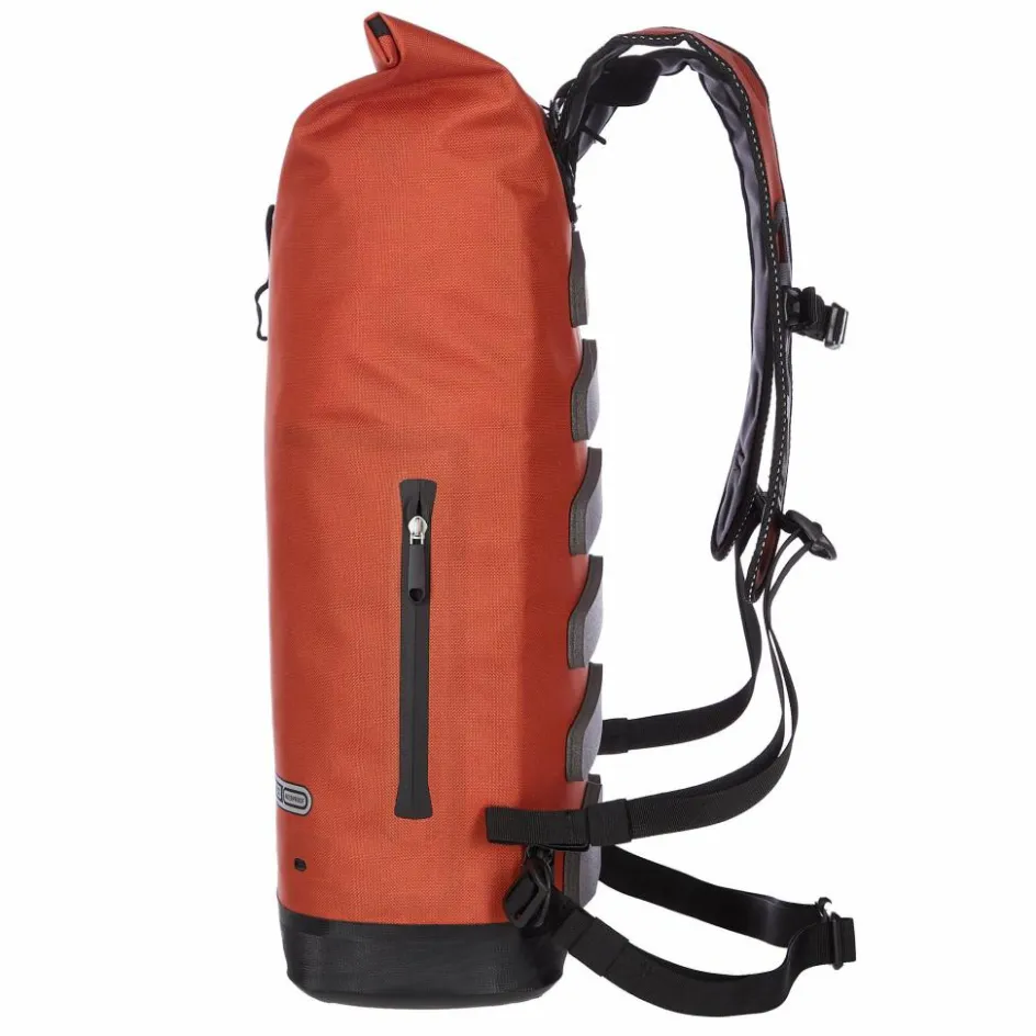 Das Planenmaterial und der Rollverschluss halten den Rucksackinhalt zuverlässig trocken. Wie immer gilt: Um die Wasserdichtigkeit zu gewährleisten, muss der Verschluss 3 Mal gerollt werden!